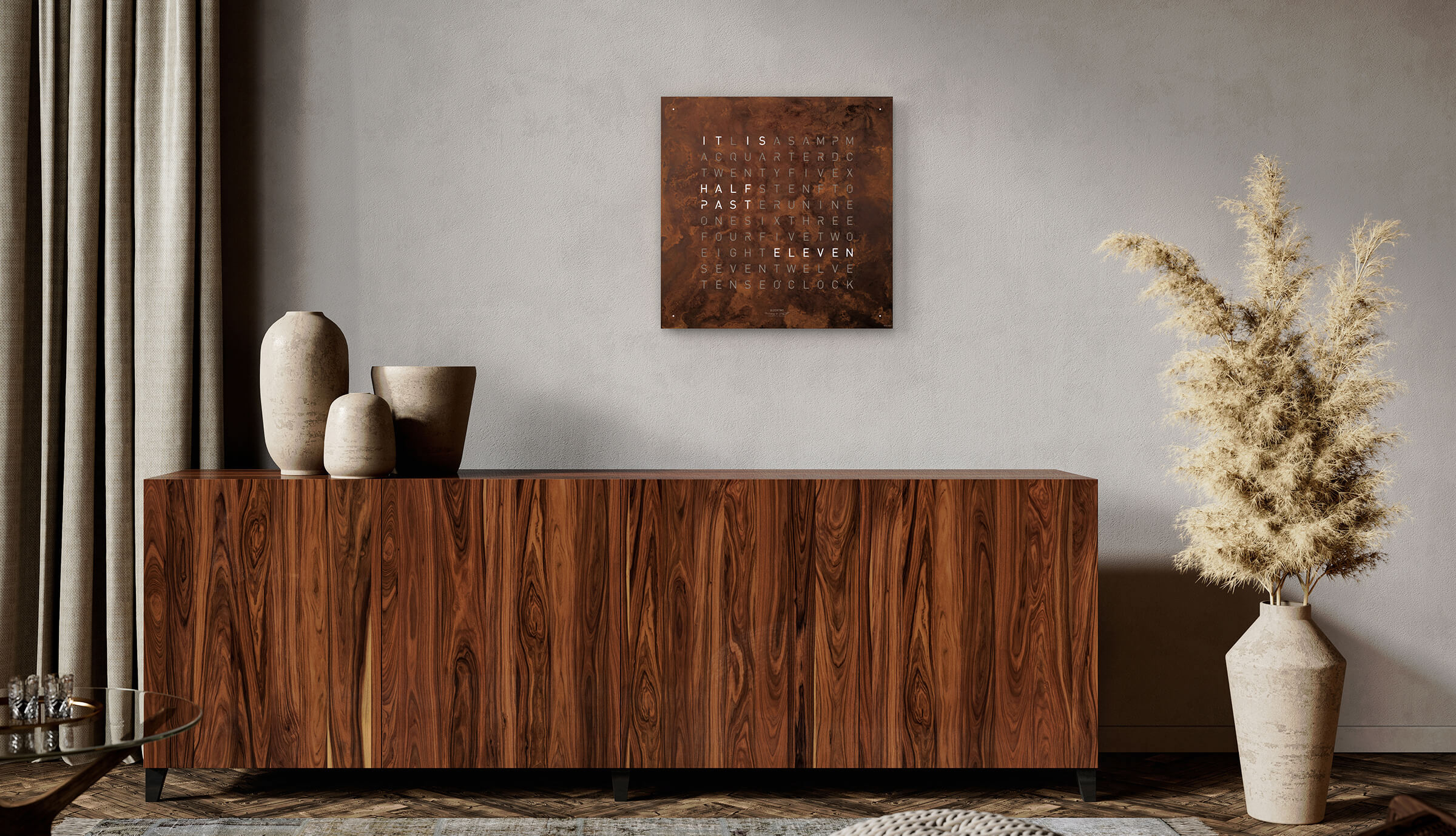 QLOCKTWO is meer dan een klok – het is een kunstobject. Deze handgemaakte designklokken uit Duitsland tonen de tijd in woorden, zoals “het is vijf over negen”, en geven zo een rustgevend ritme aan uw dag. Minimalistisch in vormgeving en verfijnd in techniek, beschikbaar als wandmodel of tafelklok.