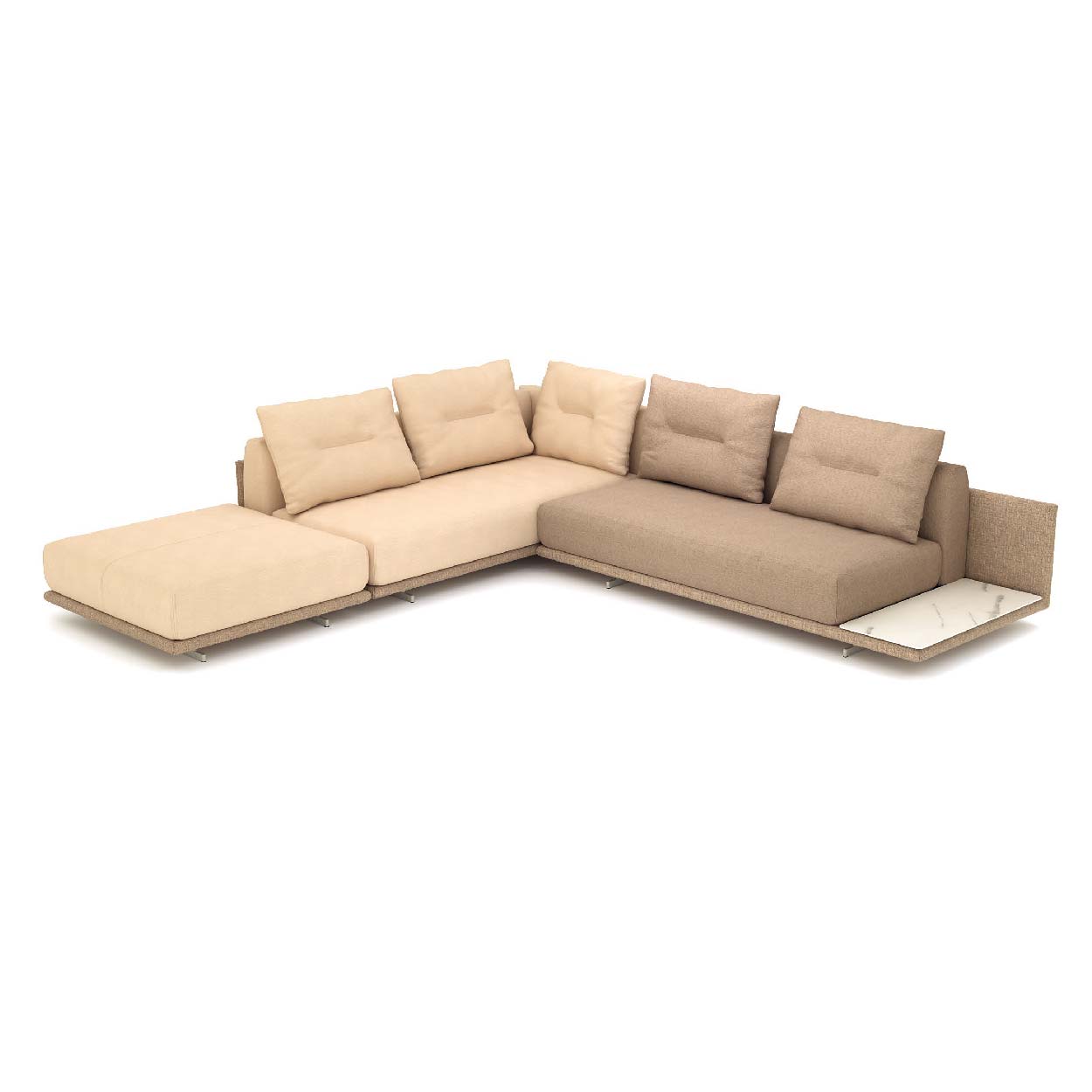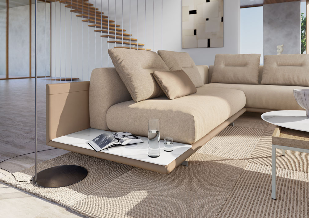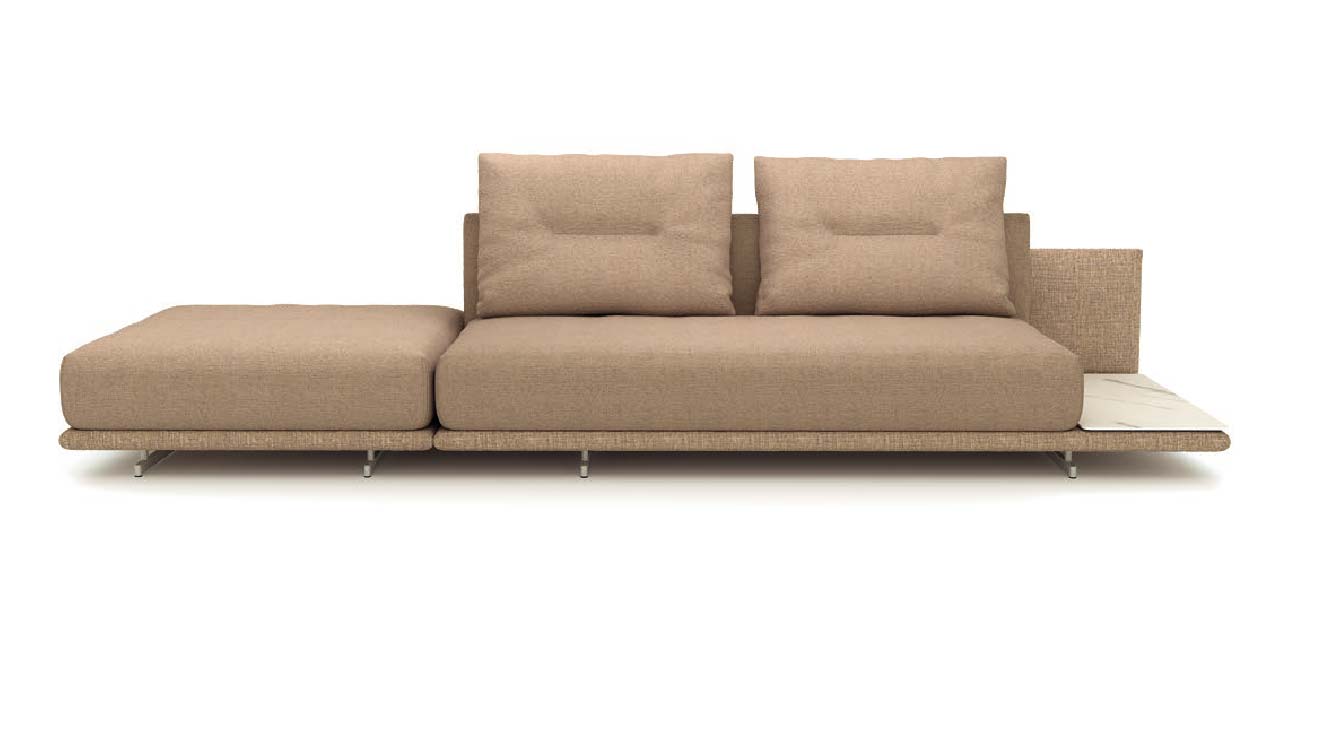 Dankzij de modulaire opbouw stemt u de opstelling precies af op uw ruimte – van compacte loveseat tot royale hoekbank. Ook zijn de delen gemakkelijk her in te delen en te verplaatsen. Voeg optioneel keramische aflegvlakken in Calacatta of Black Coffee Marble toe voor een luxe finishing touch.