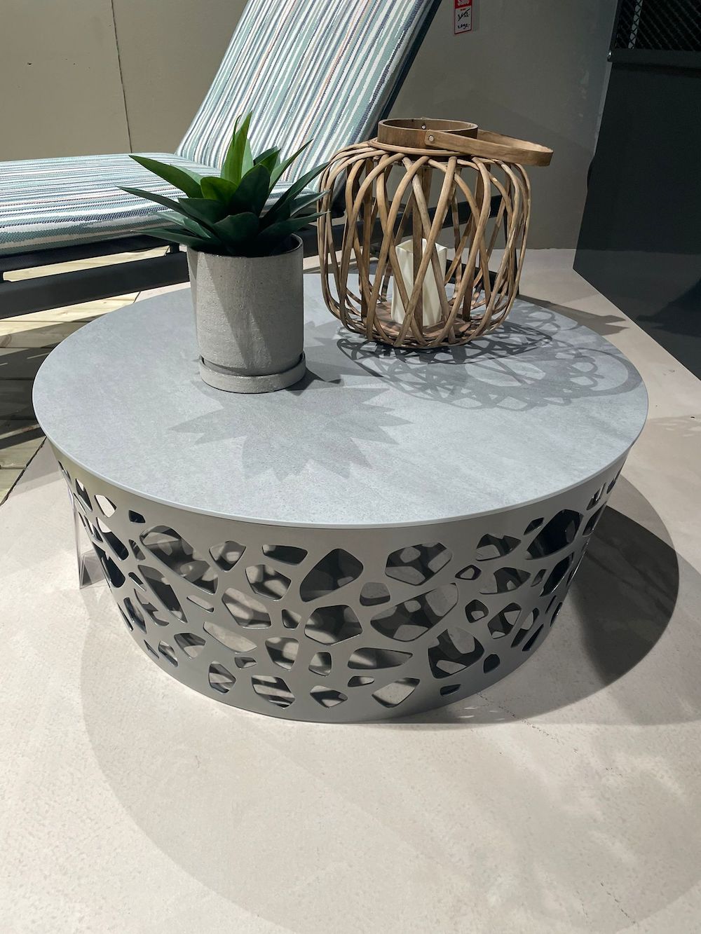 De Rolf Benz Yoko outdoor salontafel brengt stijl en kwaliteit naar buiten. Het ronde keramieken blad in Pitra Grigia en het antracietkleurige frame met kiezelvormige uitsparingen geven de tafel een luxe, natuurlijke uitstraling. Een prachtige salontafel voor bij uw loungeset of terras.