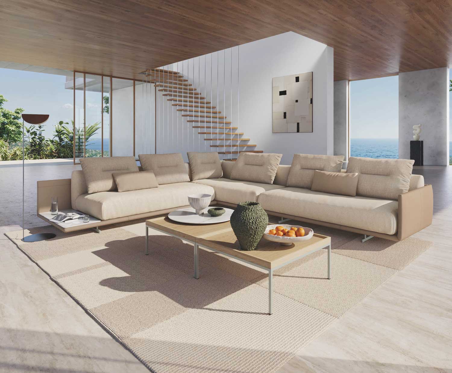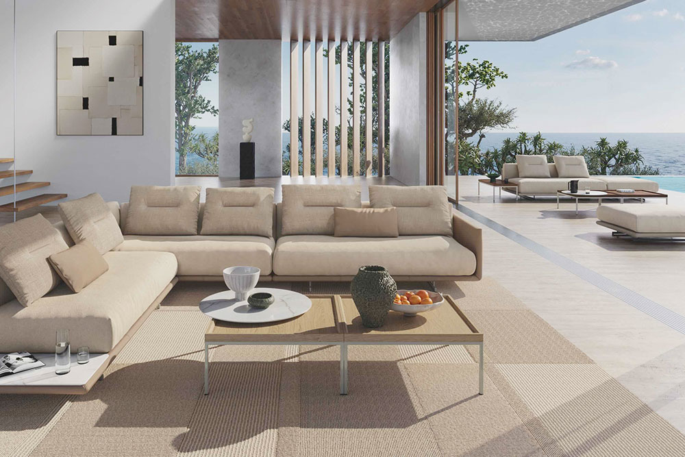Met een duidelijke focus op horizontale lijnen en openheid creëert Rolf Benz TAYA een vanzelfsprekende overgang tussen binnen en buiten. Ontwerpers Svend Loevberg en Henrik Pedersen van designstudio Norsmind hadden één uitgangspunt: het woongedeelte verlengen naar buiten, zonder concessies te doen aan zitcomfort of uitstraling.